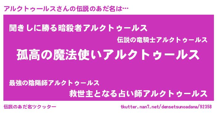 | 男性向けラノベタイトル風あだ名 | 『魔弾の王とアルクトゥールス』 |