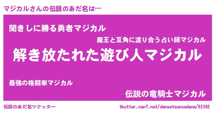 | ヒーロー風カッコイイあだ名 | 『幻影騎士マジ』『超時空戦士マジカル』 |