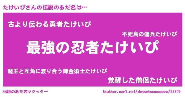 | ヒーロー風カッコイイあだ名 | 『ウルトラたけいぴマン』『ネオタケイピ』 |
