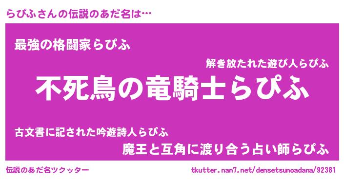 | 意味不明あだ名 | 『住所不定無職らぴふ(13歳)』 |
