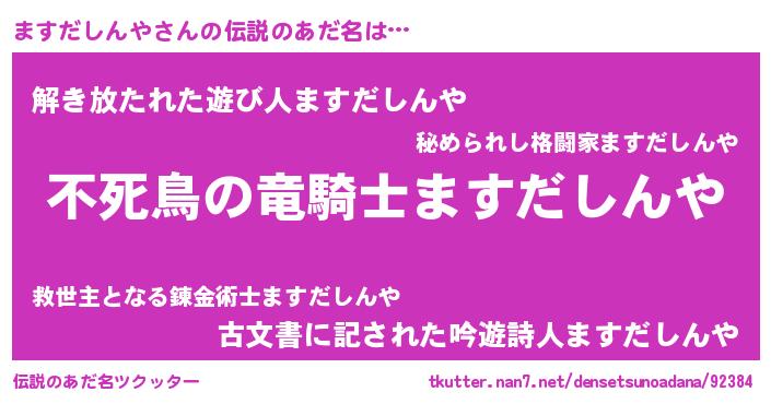 | ヒーロー風カッコイイあだ名 | 『スーパーマスダシンヤ』『魔戒騎士マス』 |