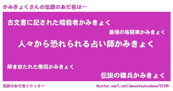 | ヒーロー風カッコイイあだ名 | 『友情の使者かみきょく』『炎刃騎士カミ』 |