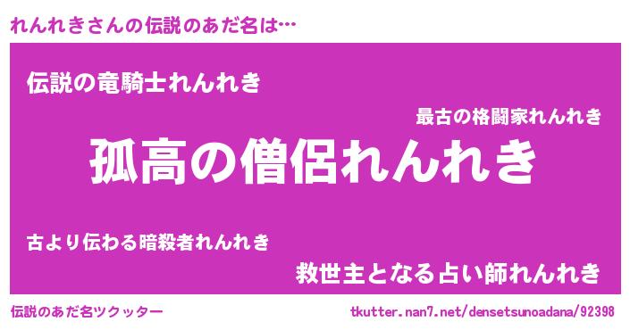 | ヒーロー風カッコイイあだ名 | 『超時空戦士レンレキ』『黄金騎士レン』 |