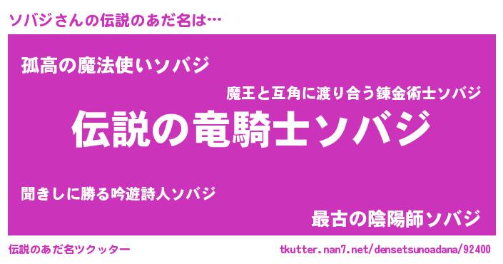 | 男性向けラノベタイトル風あだ名 | 『ソバジの憂鬱』『魔弾の王とソバジ』 |