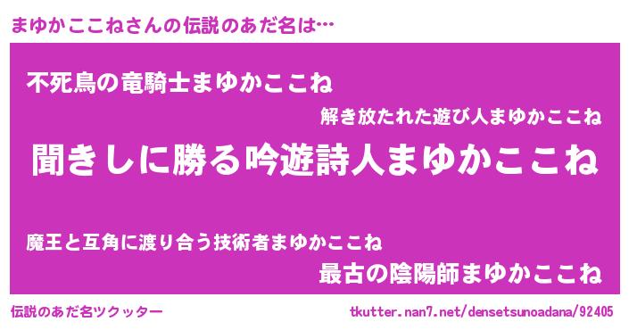 | ヒーロー風カッコイイあだ名 | 『ネオマユカココネ』『黄金騎士マユ』 |