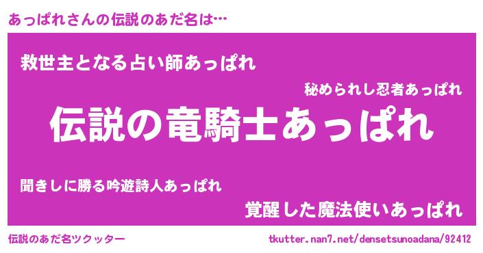 | 意味不明あだ名 | 『住所不定無職あっぱれ(6歳)』 |