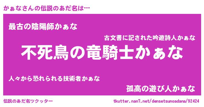 | 女子向けラノベタイトル風あだ名 | 『かぁな姫と円卓の騎士』 |