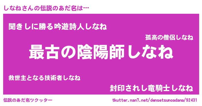 | 意味不明あだ名 | 『たけのこ科しなね属』『永久保存しなね』 |