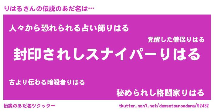 | 欧米人風あだ名 | 『マイケルりはる』『ダニエルりはる』 |