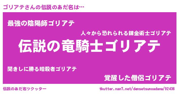 | 男性向けラノベタイトル風あだ名 | 『緋弾のゴリアテ』 |