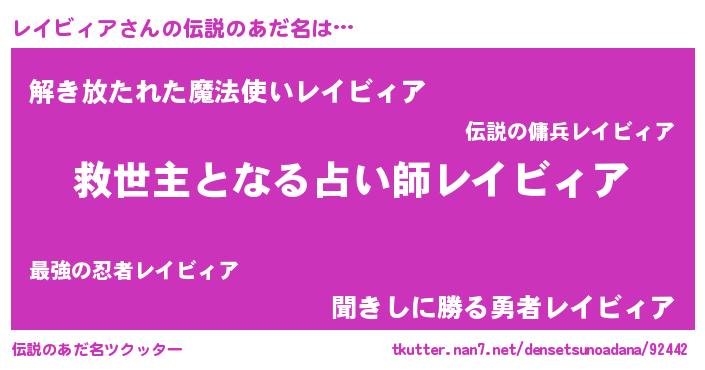 | 意味不明あだ名 | 『自称レイビィア』 |