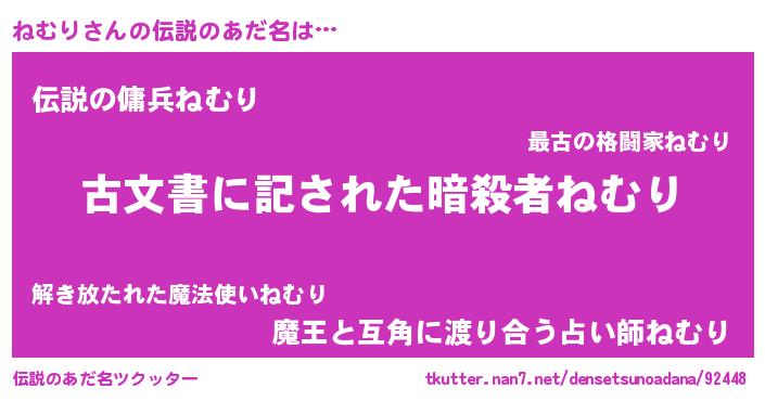 | 意味不明あだ名 | 『永久保存ねむり』『ペロリンねむり』 |