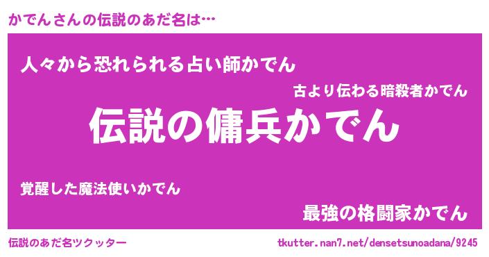 | 男性向けラノベタイトル風あだ名 | 『魔弾の王とかでん』『かでんの憂鬱』 |