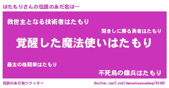 | ヒーロー風カッコイイあだ名 | 『究極戦士ハタモリ』『炎刃騎士ハタ』 |