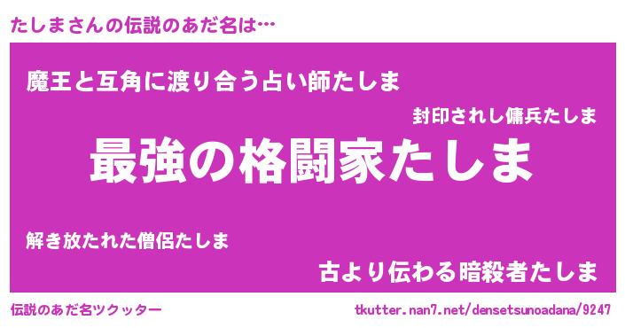 | ヒーロー風カッコイイあだ名 | 『ウルトラたしまマン』『ネオタシマ』 |