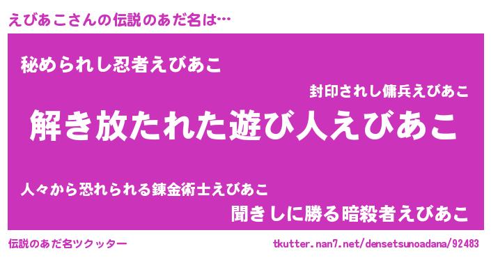 | ヒーロー風カッコイイあだ名 | 『銀牙騎士エビ』『ウルトラえびあこマン』 |