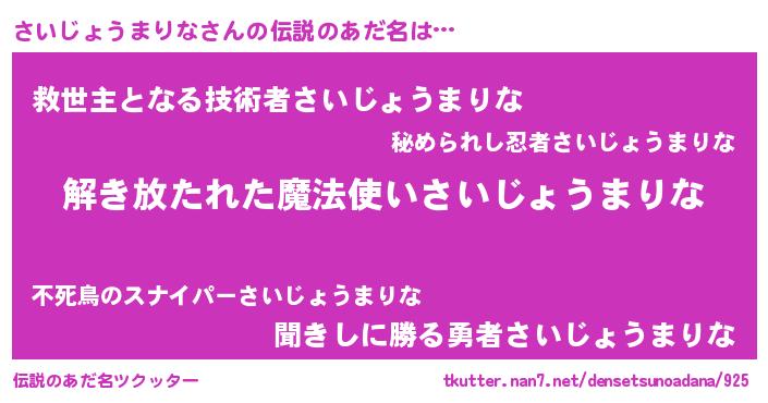 | 意味不明あだ名 | 『とにかく怪しいさいじょうまりな』 |