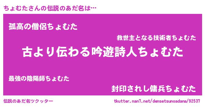 | 意味不明あだ名 | 『永久保存ちょむた』『ペロリンちょむた』 |
