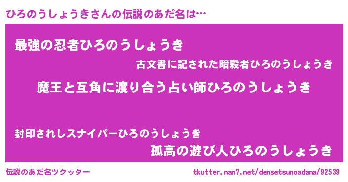 | 意味不明あだ名 | 『自称ひろのうしょうき』 |