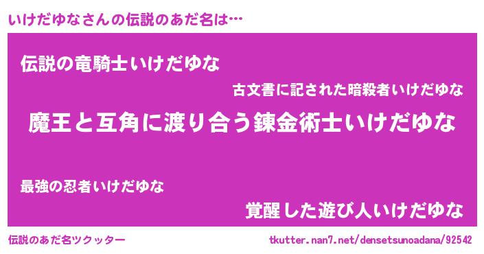 | ヒーロー風カッコイイあだ名 | 『慈愛の使者いけだゆな』『銀牙騎士イケ』 |