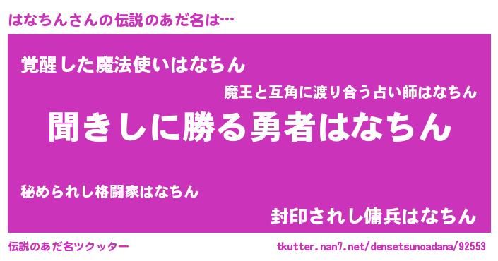 | ヒーロー風カッコイイあだ名 | 『ネオハナチン』『天弓騎士ハナ』 |