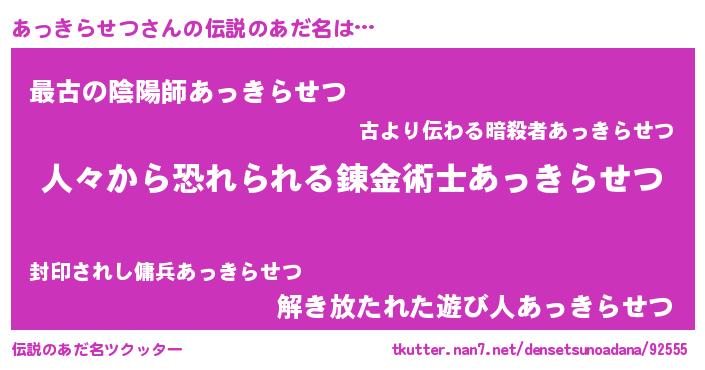 | ヒーロー風カッコイイあだ名 | 『仮面アッダー』『愛の使者あっきらせつ』 |
