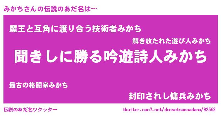 | ヘコむあだ名 | 『みかち(小並感)』『みかふぇ~』 |