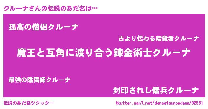 | ファンタジー風あだ名 | 『カーククルラー』『クインクット』 |