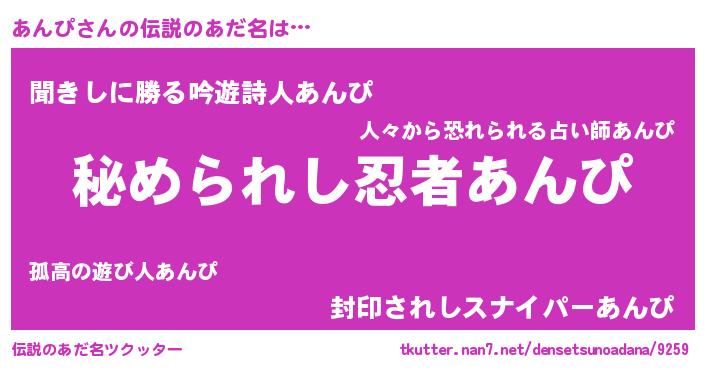 | ヒーロー風カッコイイあだ名 | 『ウルトラあんぴマン』『ネオアンピ』 |