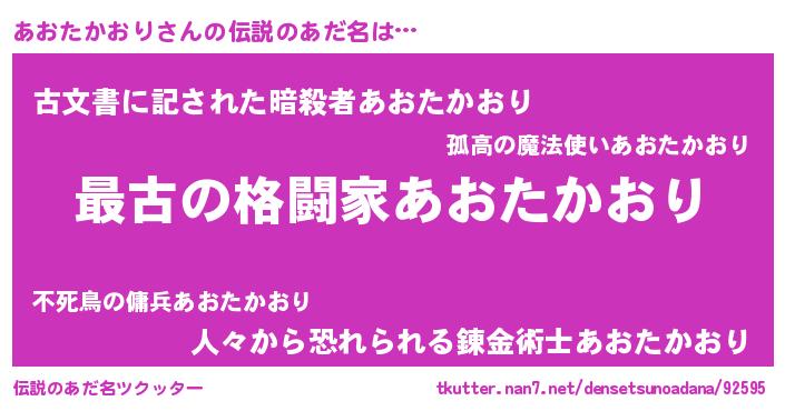 | 男性向けラノベタイトル風あだ名 | 『あおたかおりに滅ぼされるだけの簡単なお仕事です』 |