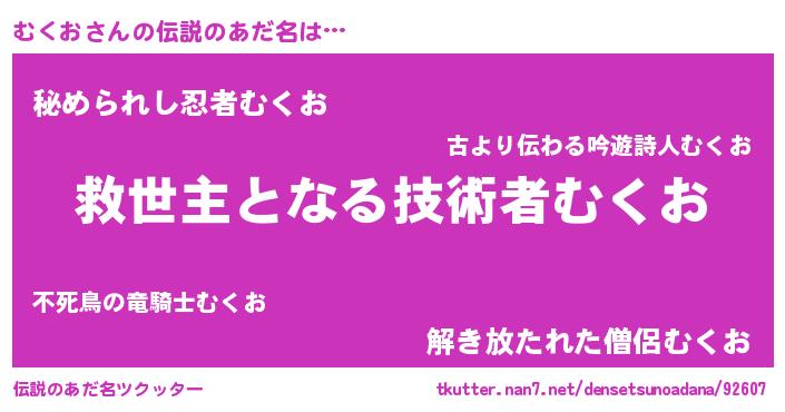 | ヒーロー風カッコイイあだ名 | 『天空の使者むくお』『仮面ムクダー』 |