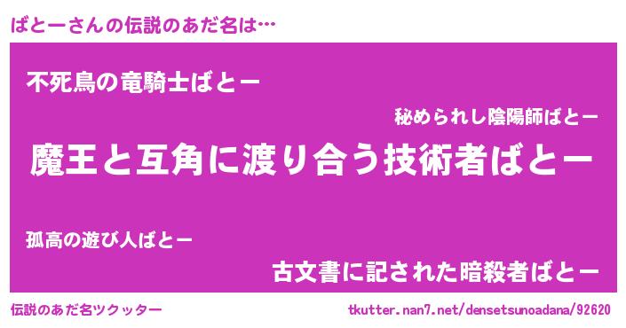 | ヒーロー風カッコイイあだ名 | 『慈愛の使者ばとー』『スーパーバトー』 |