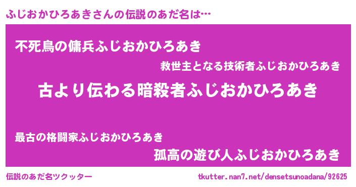 | ヘコむあだ名 | 『ふじおかひろあき(爆)』『ふじにゅー』 |