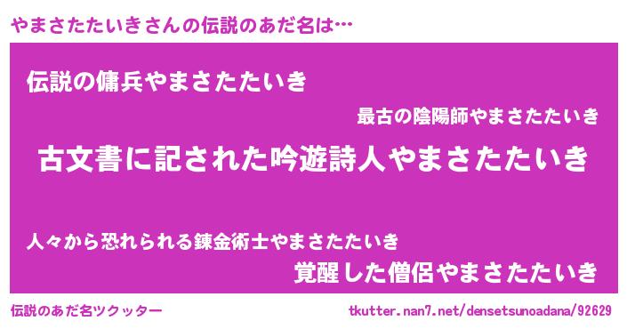 | ヒーロー風カッコイイあだ名 | 『ネオヤマサタタイキ』『仮面ヤマダー』 |