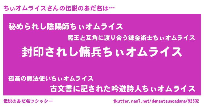 | 意味不明あだ名 | 『自称ちぃオムライス』 |