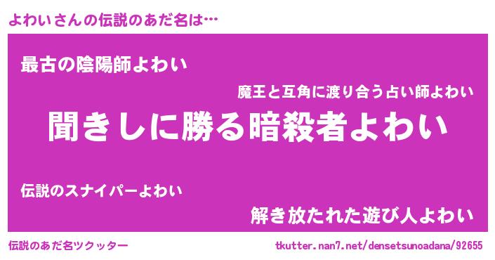 | 胡散臭い通販商品みたいなあだ名 | 『絶対に幸福をもたらす健康食品…その名も「よわい」』 |
