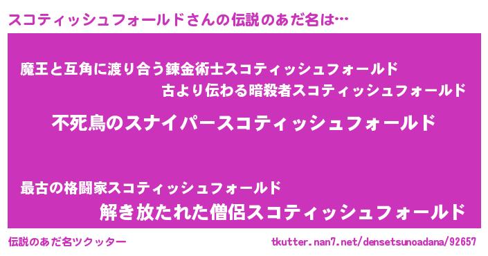 | 男性向けラノベタイトル風あだ名 | 『魔弾の王とスコティッシュフォールド』 |