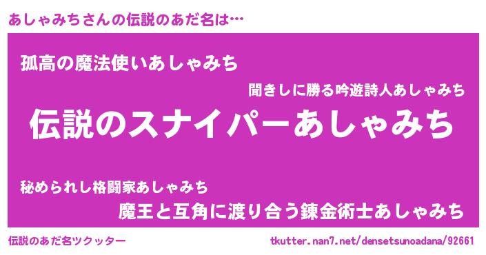 | ヒーロー風カッコイイあだ名 | 『ウルトラ戦士アシャミチ』 |