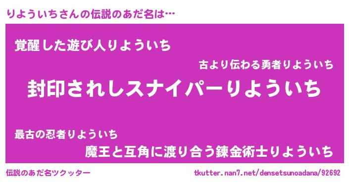| ヒーロー風カッコイイあだ名 | 『仮面リヨダー』『スーパーリヨウイチ』 |