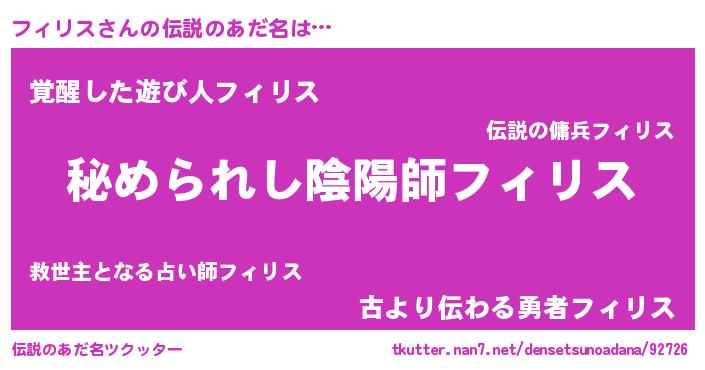| ヒーロー風カッコイイあだ名 | 『ウルトラフィリスマン』『天弓騎士フィ』 |