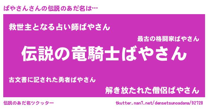 | 胡散臭い通販商品みたいなあだ名 | 『必ず成功するブレスレット…その名も「ばやさん」』 |