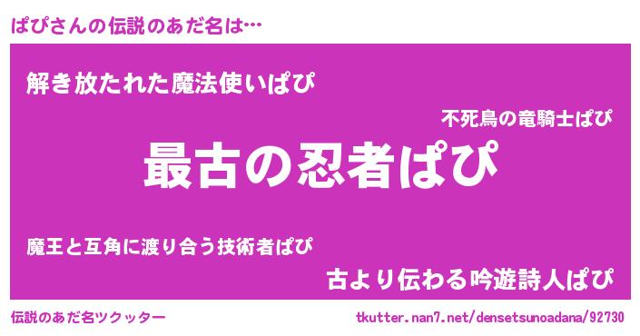 | ポケモン風あだ名 | 『パーピイ』『パピダネ』『パピゴンZ』 |