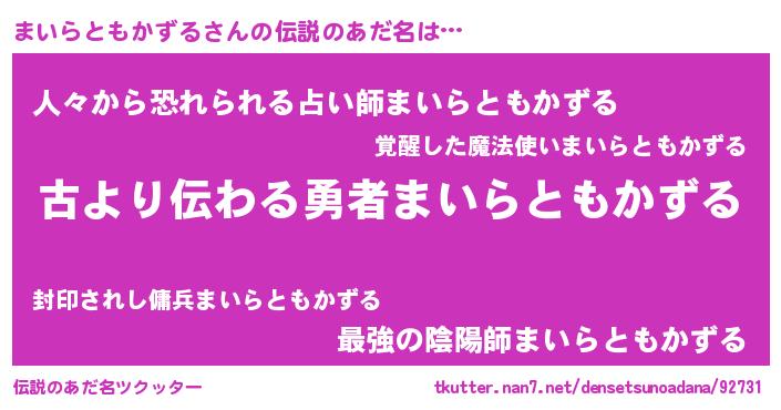 | 男性向けラノベタイトル風あだ名 | 『転生したらまいらともかずるだった件』 |