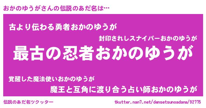 | ヒーロー風カッコイイあだ名 | 『仮面オカダー』『究極戦士オカノユウガ』 |