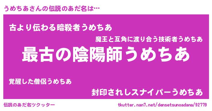 | 意味不明あだ名 | 『うめちあフォーエバー』『自称うめちあ』 |