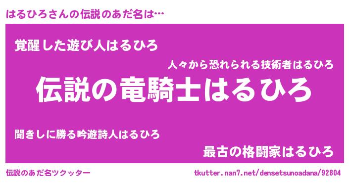 | ヒーロー風カッコイイあだ名 | 『スーパーハルヒロ』『仮面ハルダー』 |