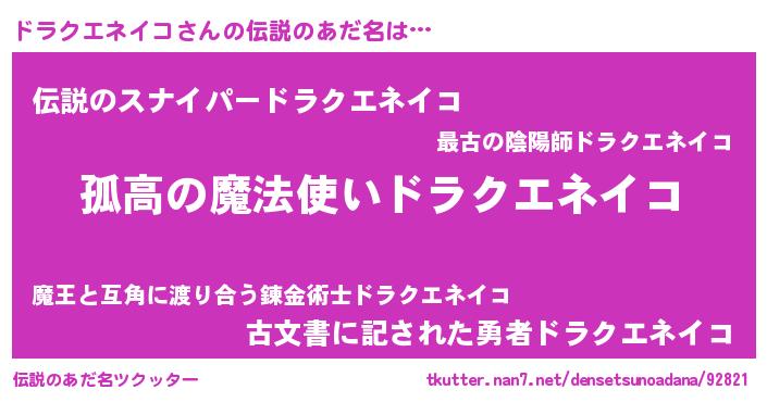 | 欧米人風あだ名 | 『ウサインドラクエネイコ』 |