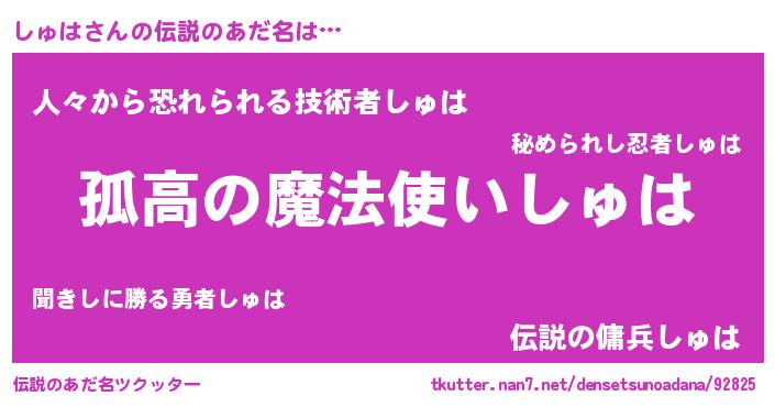 | ヒーロー風カッコイイあだ名 | 『黄金騎士シュ』『正義の使者しゅは』 |