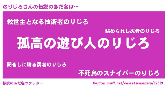 | 意味不明あだ名 | 『とにかく怪しいのりじろ』 |