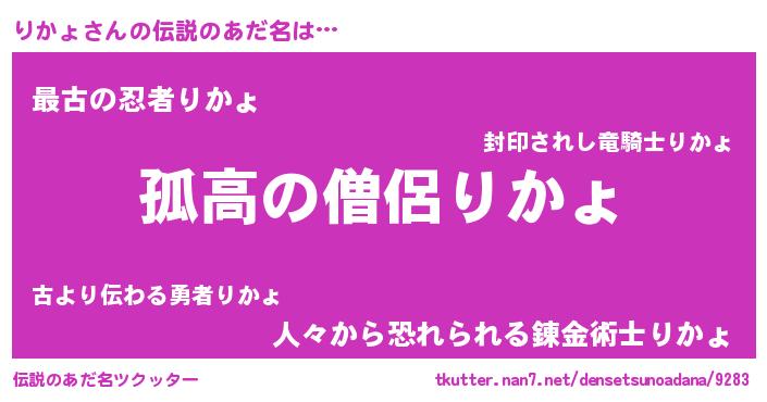 | 男性向けラノベタイトル風あだ名 | 『魔弾の王とりかょ』 |